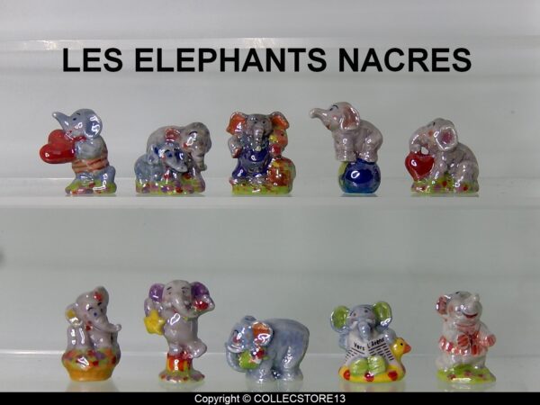 SERIE COMPLETE DE FEVES LES ELEPHANTS NACRES